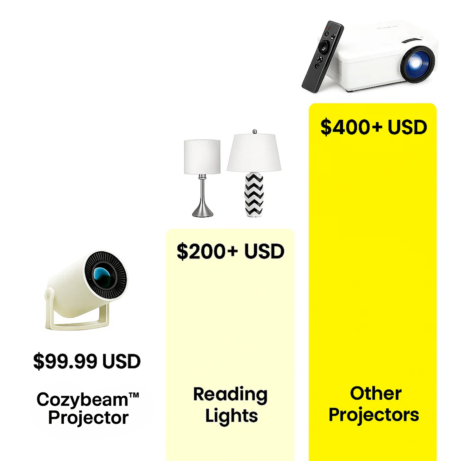 High-end projectors can cost over $400, and specialty ambiance lighting adds hundreds more. The Cozybeam™ combines both for just $99.99.